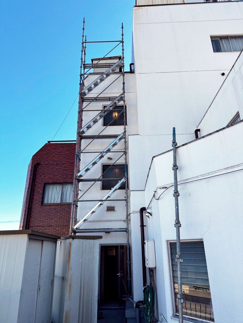 屋上階の給水タンク撤去のための足場です。